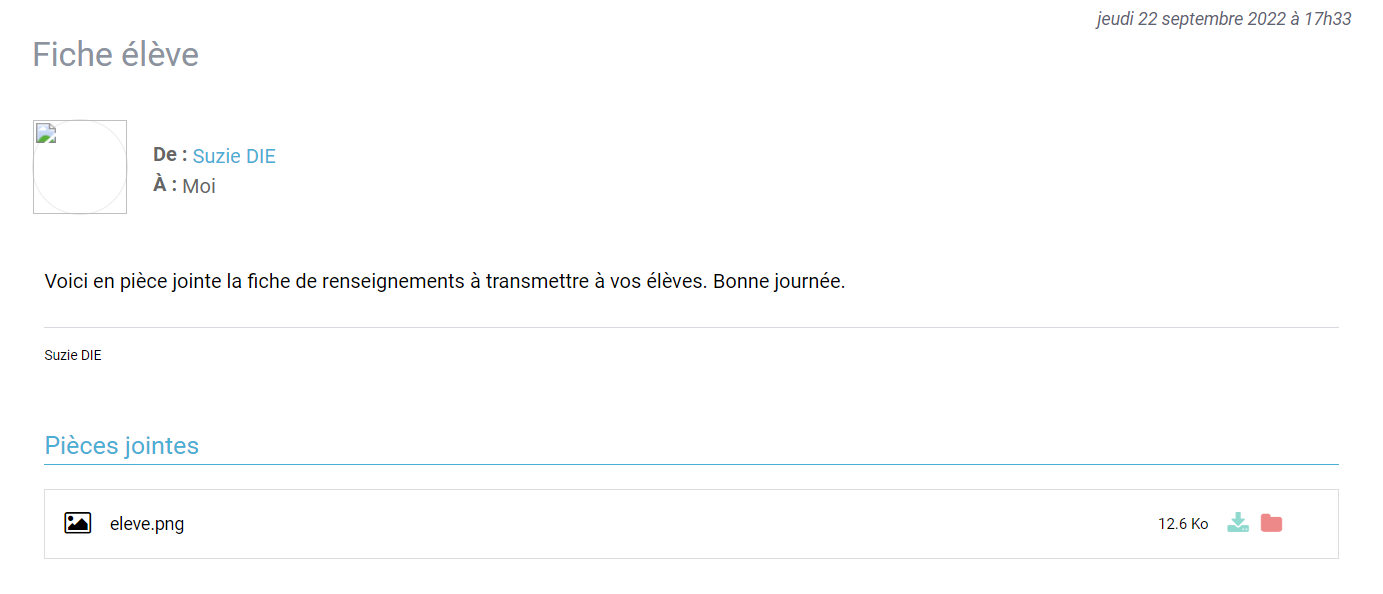 - A la réception d'un message contenant des pièces jointes, l'utilisateur peut choisir de les télécharger sur son espace documentaire ou directement sur son ordinateur.