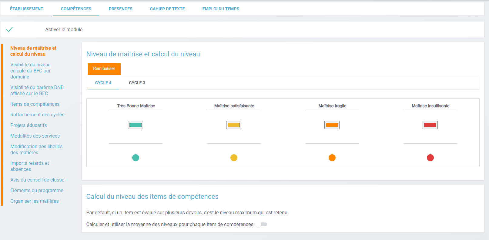 Ajout d'une option que l'établissement peut activer ou non. Pour chaque item, si l'option est activée, s'il a plusieurs évaluations pour une même matière, on ne prend plus le maximum, mais on fait la moyenne entre tous les niveaux mis.