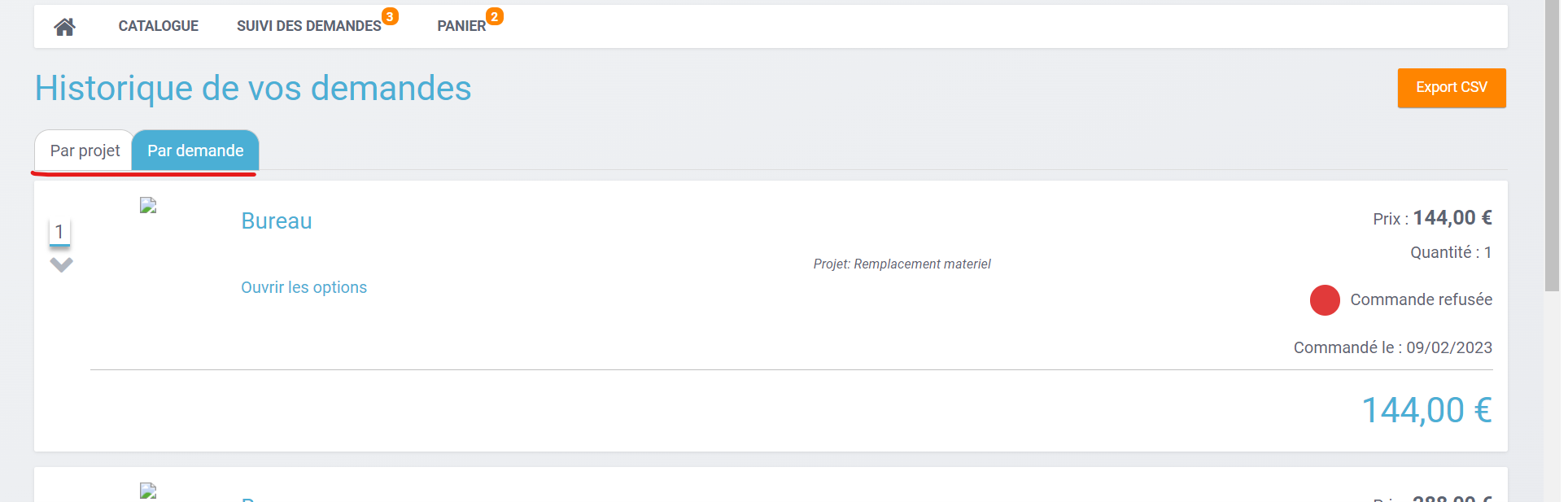 - "Par projet" : toutes vos demandes y sont affichées, par projets
