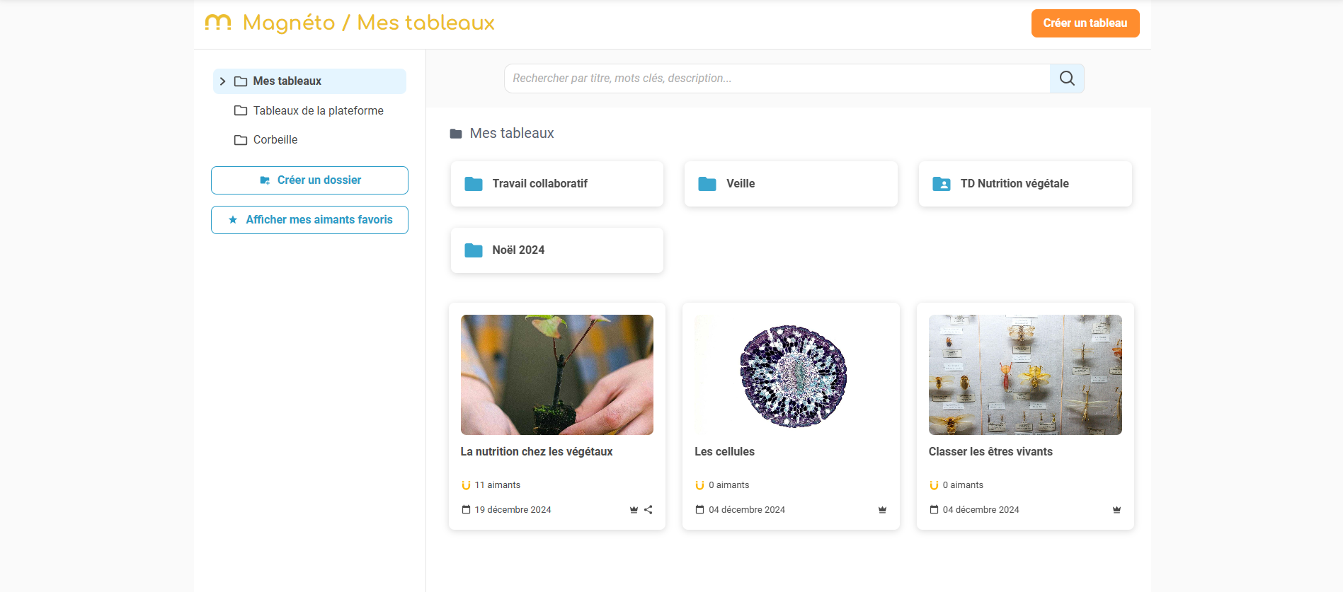 • MAG-354 : affichage du contenu de la page d'accueil (arborescence, liste des tableaux, drag n drop des tableaux vers les dossiers)