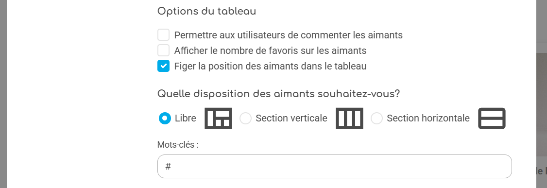- Une nouvelle option est apparue dans les propriétés du tableau : figer la position de tous les aimants. Activer cette fonctionnalité empêche le déplacement des aimants, évitant ainsi des erreurs de manipulation.