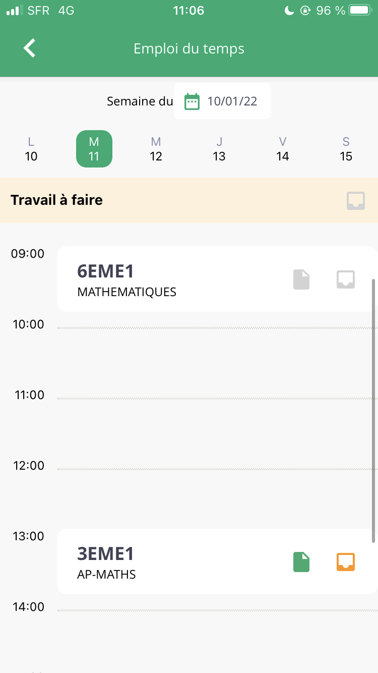 • Module Cahier de texte disponible en consultation pour les enseignants