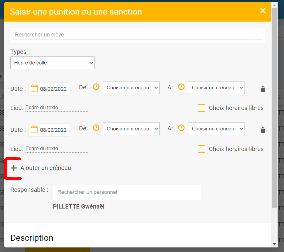 - Quand on saisit une punition avec le modèle 2 qui correspond le plus aux heures de retenue, il est possible désormais d'ajouter plusieurs créneaux.