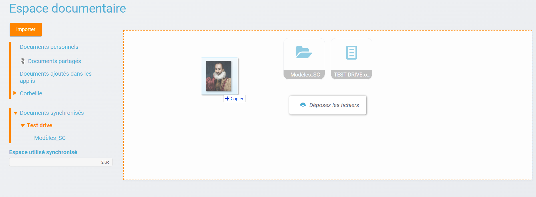• Possibilité de copier, déplacer, partager des documents depuis le dossier Documents synchronisés