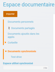 • Accès à ses documents Nextcloud depuis l'espace documentaire dans le dossier Documents synchronisés